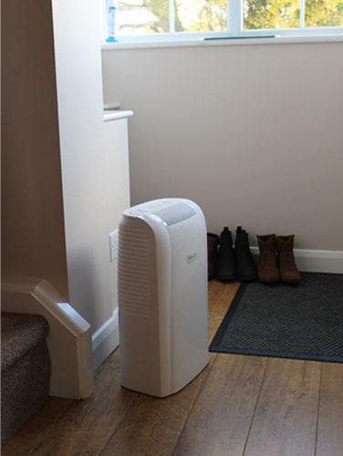 Excesul de apa din aer este cauza condensului si aparitiei mucegaiului. Aerul incarcat de umezeala este atras in dezumidificator si trecut peste o bobina rece care transforma excesul de umiditate in condens ce se colecteaza intr-un rezervor aflat in interiorul aparatului. Aerul uscat si ceva mai cald este suflat inapoi in camera.